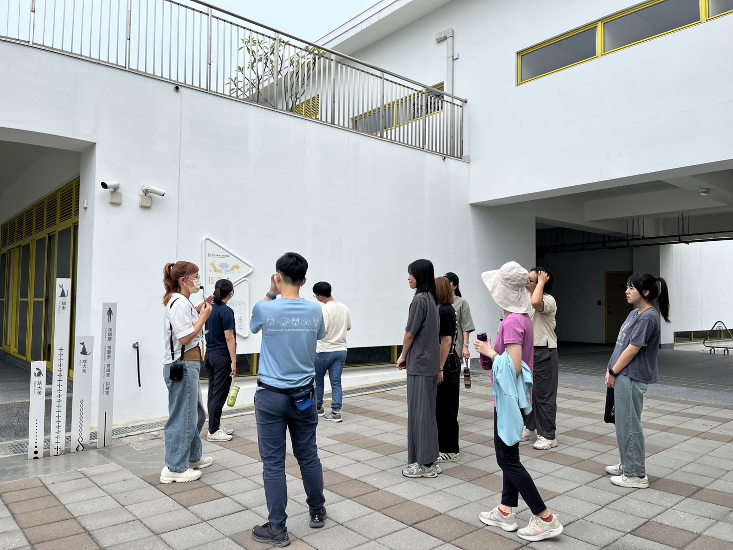 除了與狗狗的互動,學員們也有機會進入貓舍,與園區的收容貓進行細膩交流。