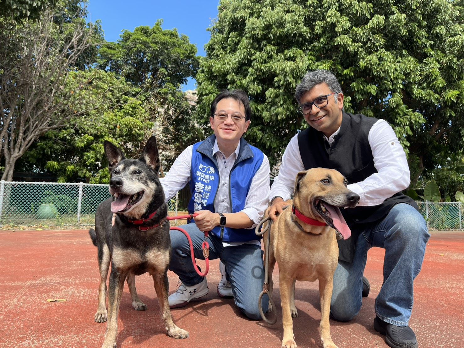 兩位總經理更親自陪伴毛孩「路克」與「皮蛋」散步、進行社會化訓練。