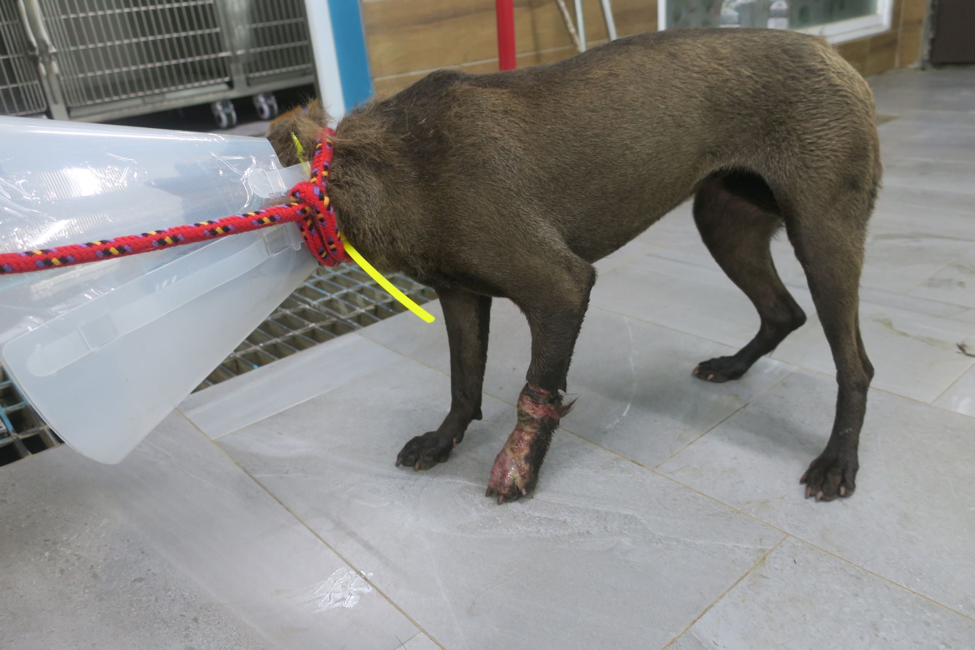 因傷勢深及皮層,若放任不管,牠面臨的可能是截肢風險。