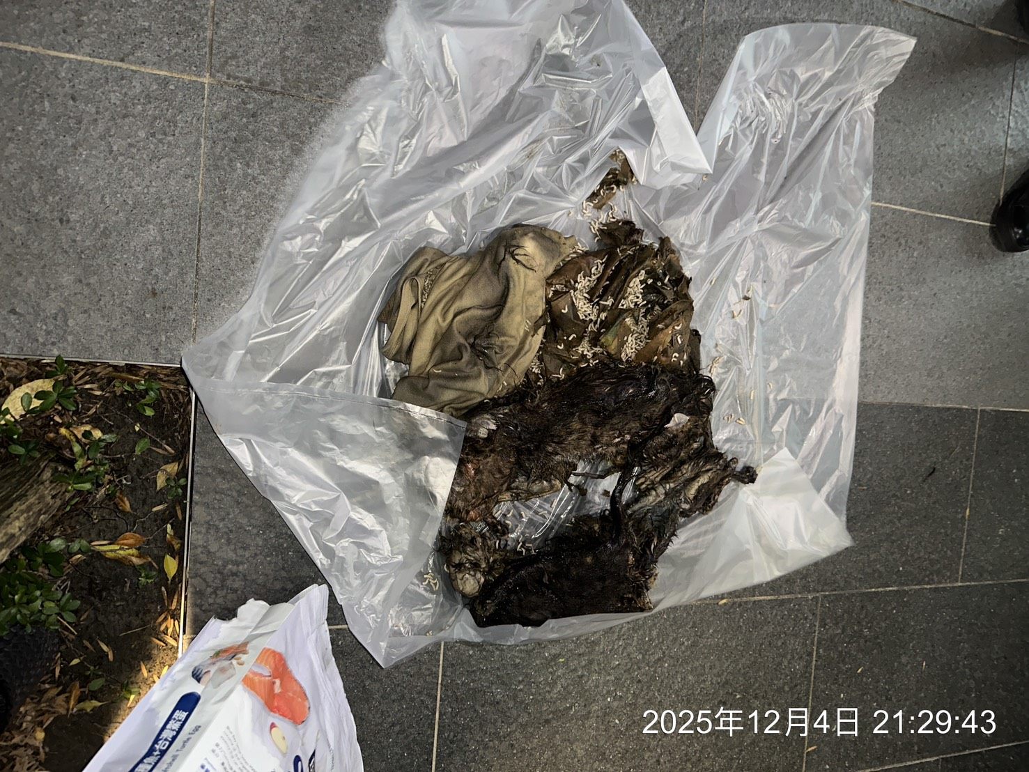 12 月 4 日鄰居通報,飼主返家後丟棄兩袋疑似散發屍臭的垃圾。