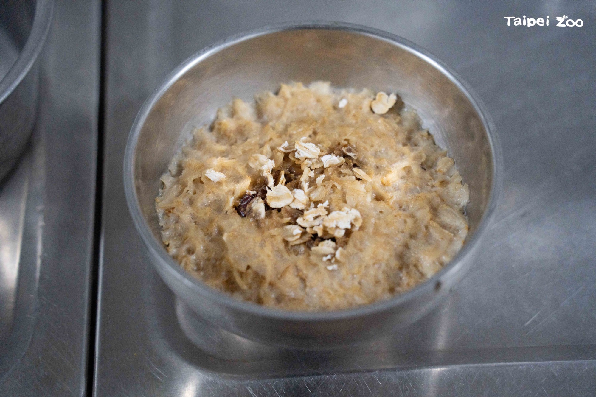 保育員為黑糖準備的生日「蛋糕」,正是依照這樣的生態特性設計——燕麥、紅棗與葡萄乾蒸製成主體。
