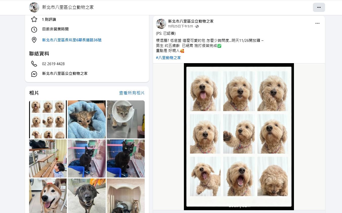 👉 亦可追蹤八里動物之家臉書粉絲專頁,第一時間認識可愛毛孩們