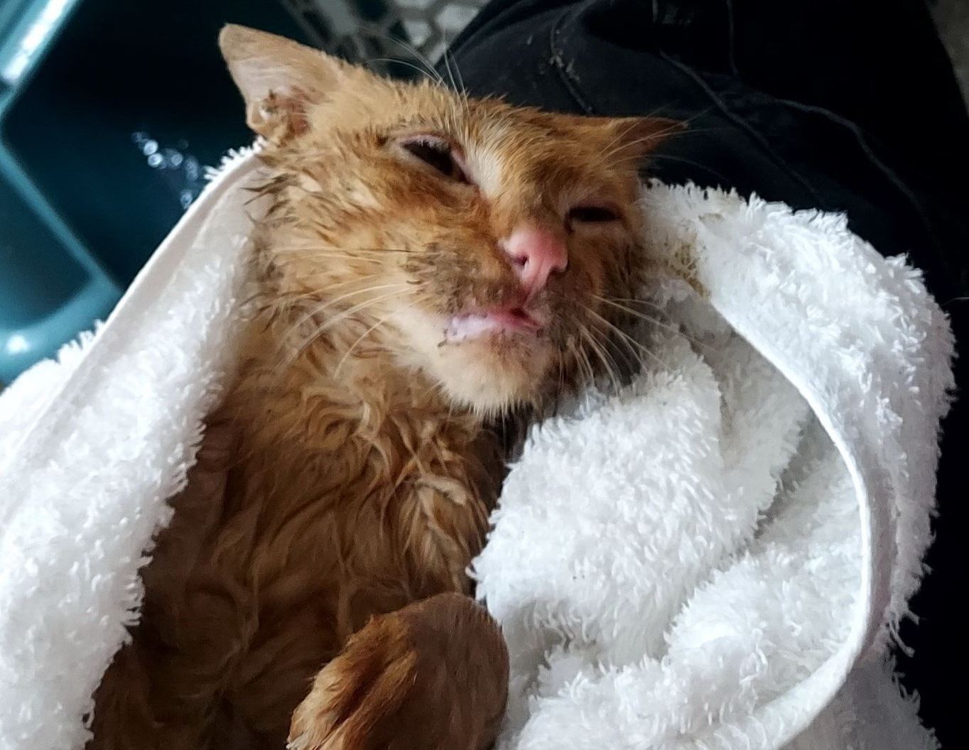 雨中驚魂變幸福結局!新店小橘貓落水獲救,終於找到溫暖的家