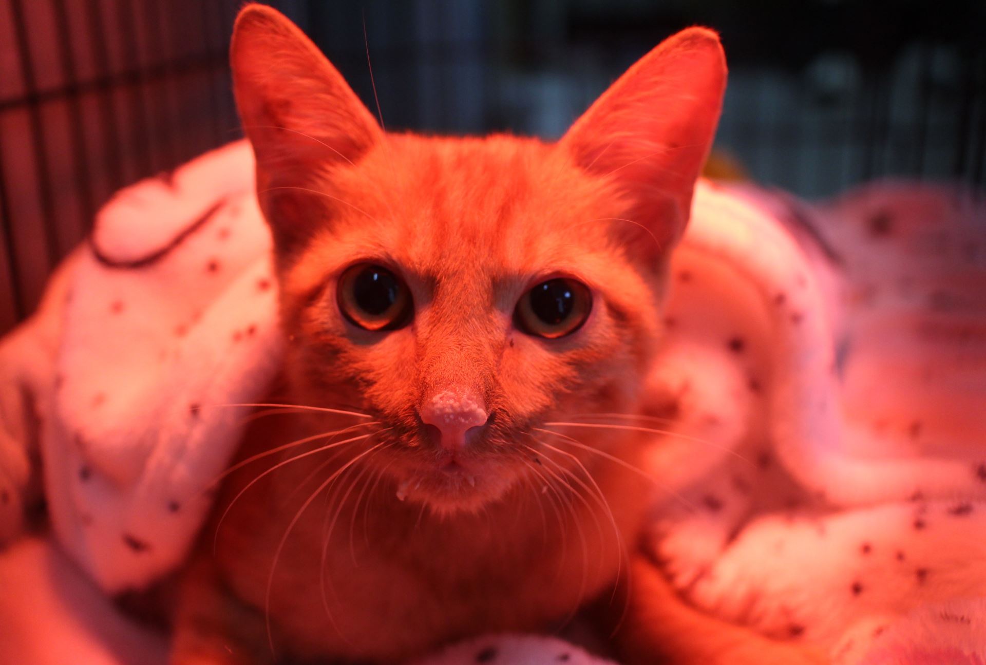 經過妥善照護後,小橘貓精神與食慾明顯好轉。