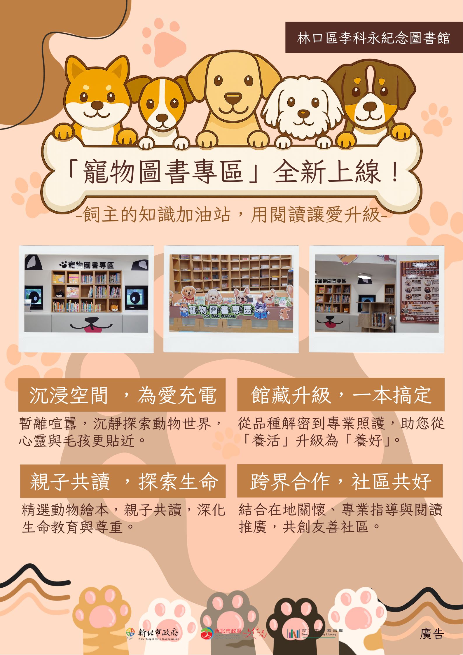 書香遇見毛腳印,林口李科永紀念圖書館打造「寵物閱讀樂園」,陪孩子在故事中學會愛與責任