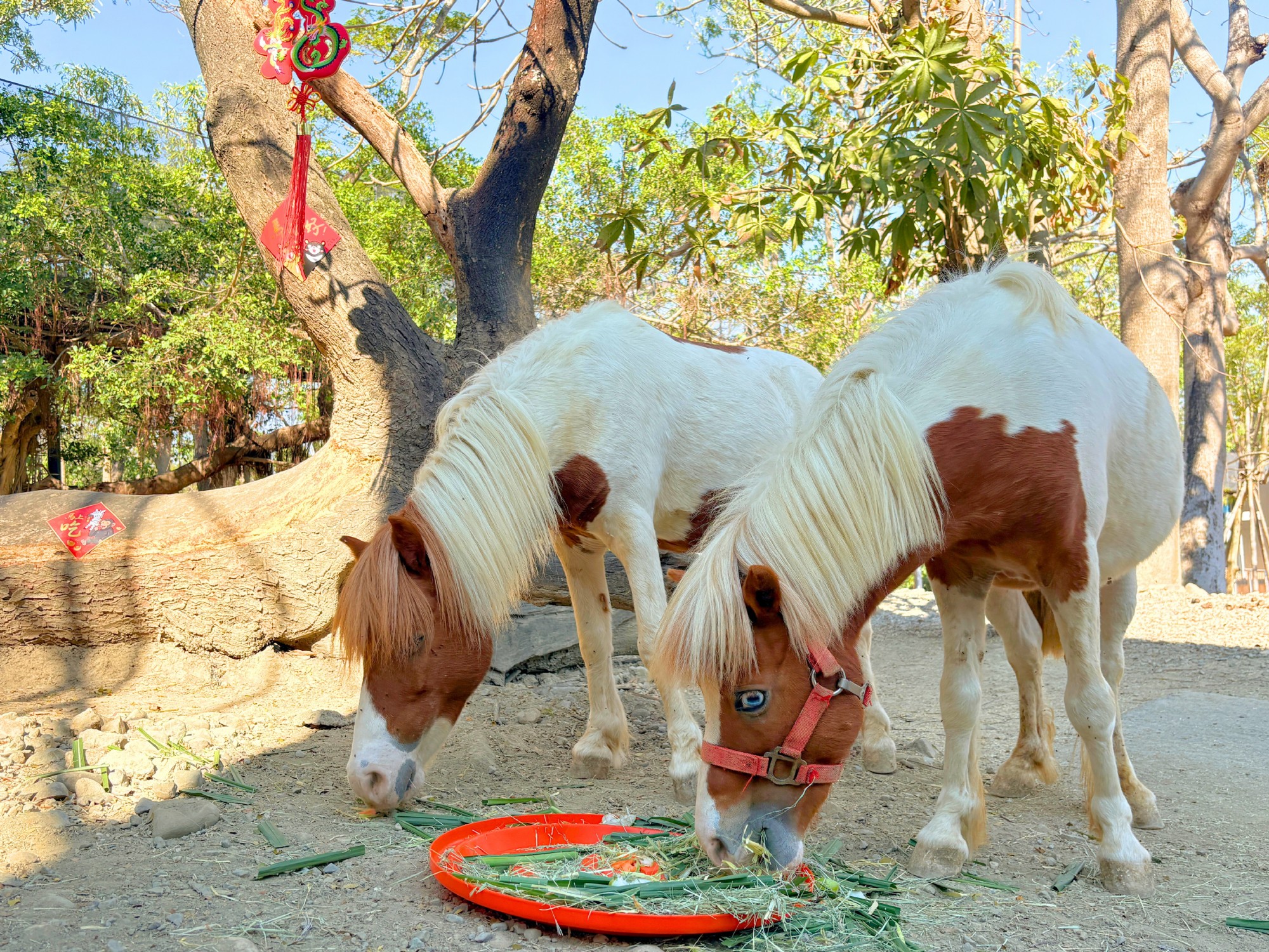 適逢馬年,高雄壽山動物園於除夕前夕特別製作「金馬五吉」年菜,為園內動物加菜圍爐。