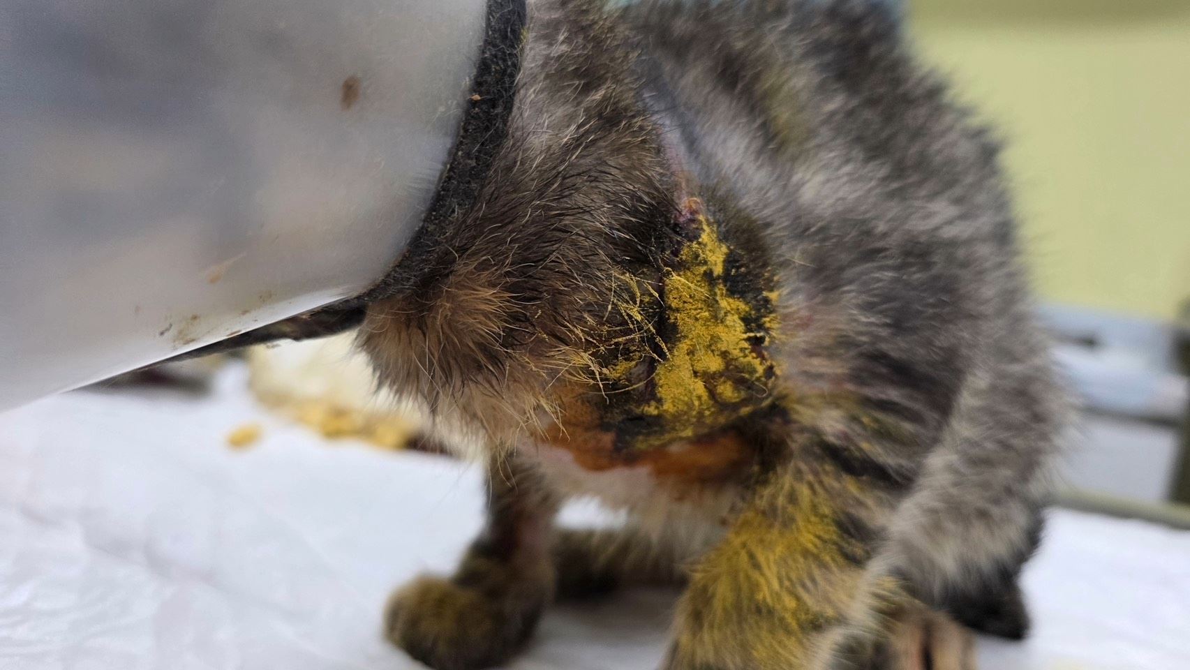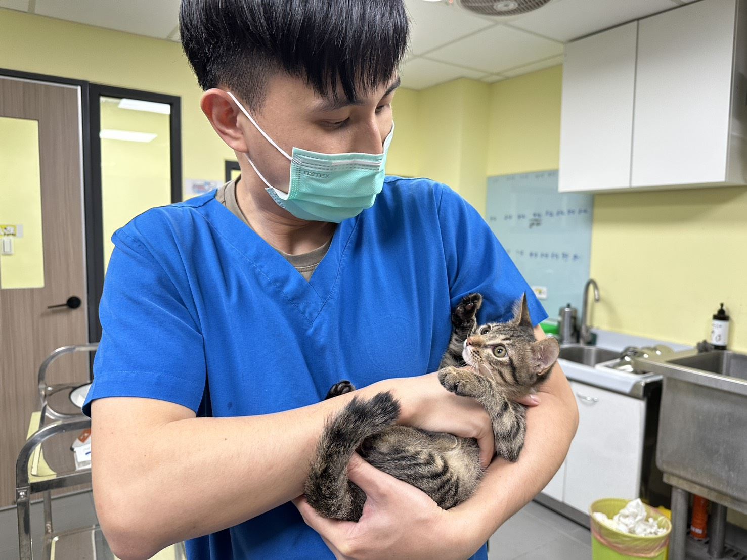 隨後,小貓轉由動保處毛寶貝醫療中心接手,進行更完整的清創與外傷照護。