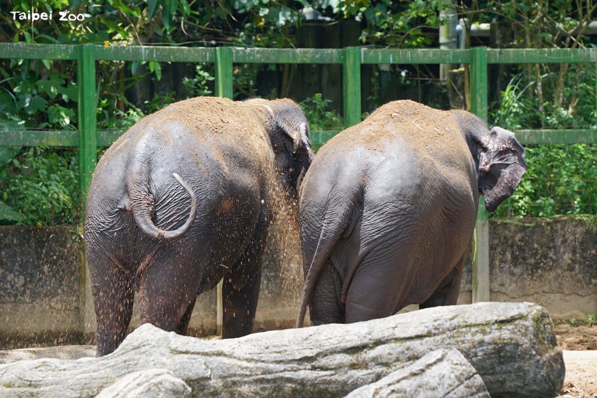 活動場中的沙坑也會定期更換沙土或木屑,亞洲象常會用象鼻將沙子拋灑到背上,達到防曬與防蟲的效果,這也是野外大象常見的自然行為。