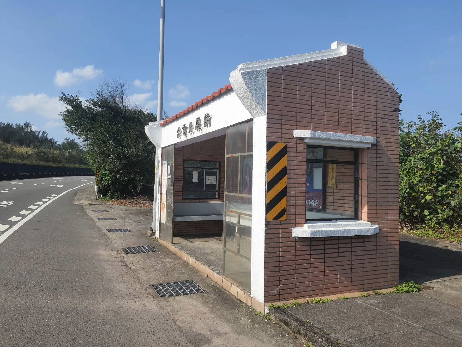 有民眾在基金公路台電北展館候車亭附近,發現一隻體型較大的海鳥蹲坐在地面上,對於來往的人車幾乎沒有反應。
