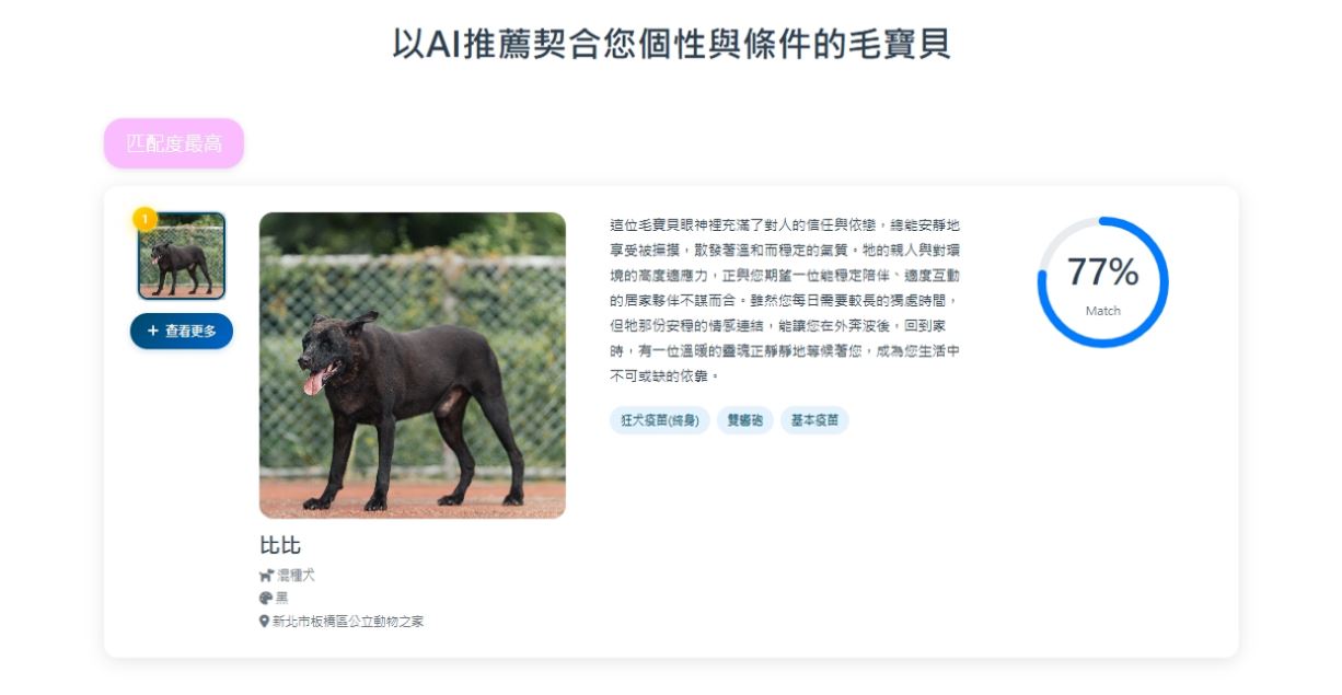 透過這套智慧平台,民眾可以依據生活型態、居住空間、飼養經驗等條件進行篩選,系統會協助媒合最適合的毛寶貝。