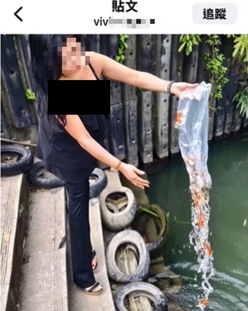 經查證後發現,該名民眾在河岸放生外來種金魚,已涉及棄養動物的行為。
