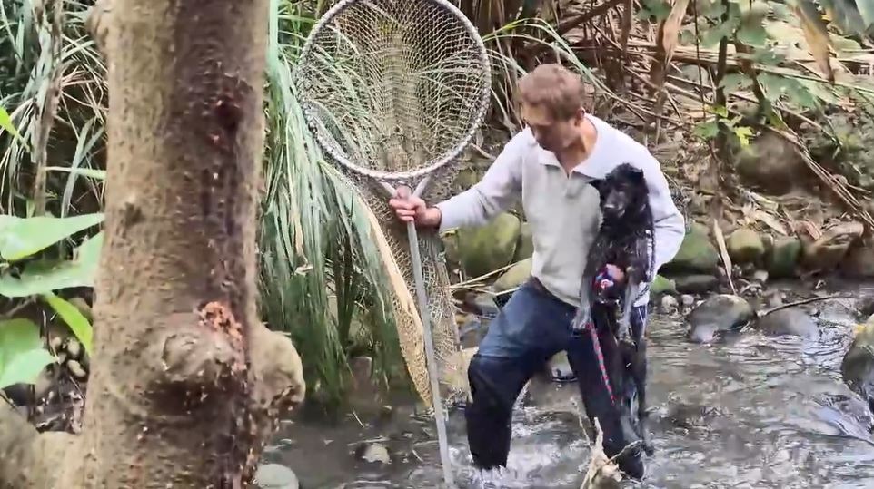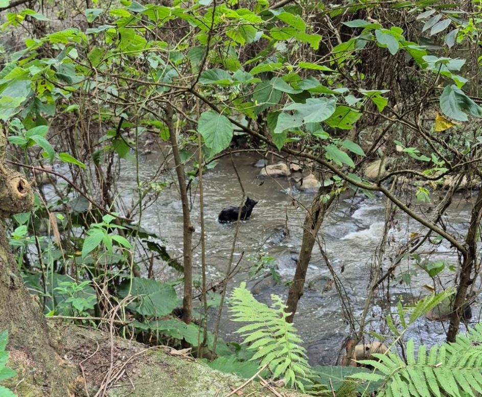 黑狗受困湍急溪流,八里動物之家即刻救援守護生命