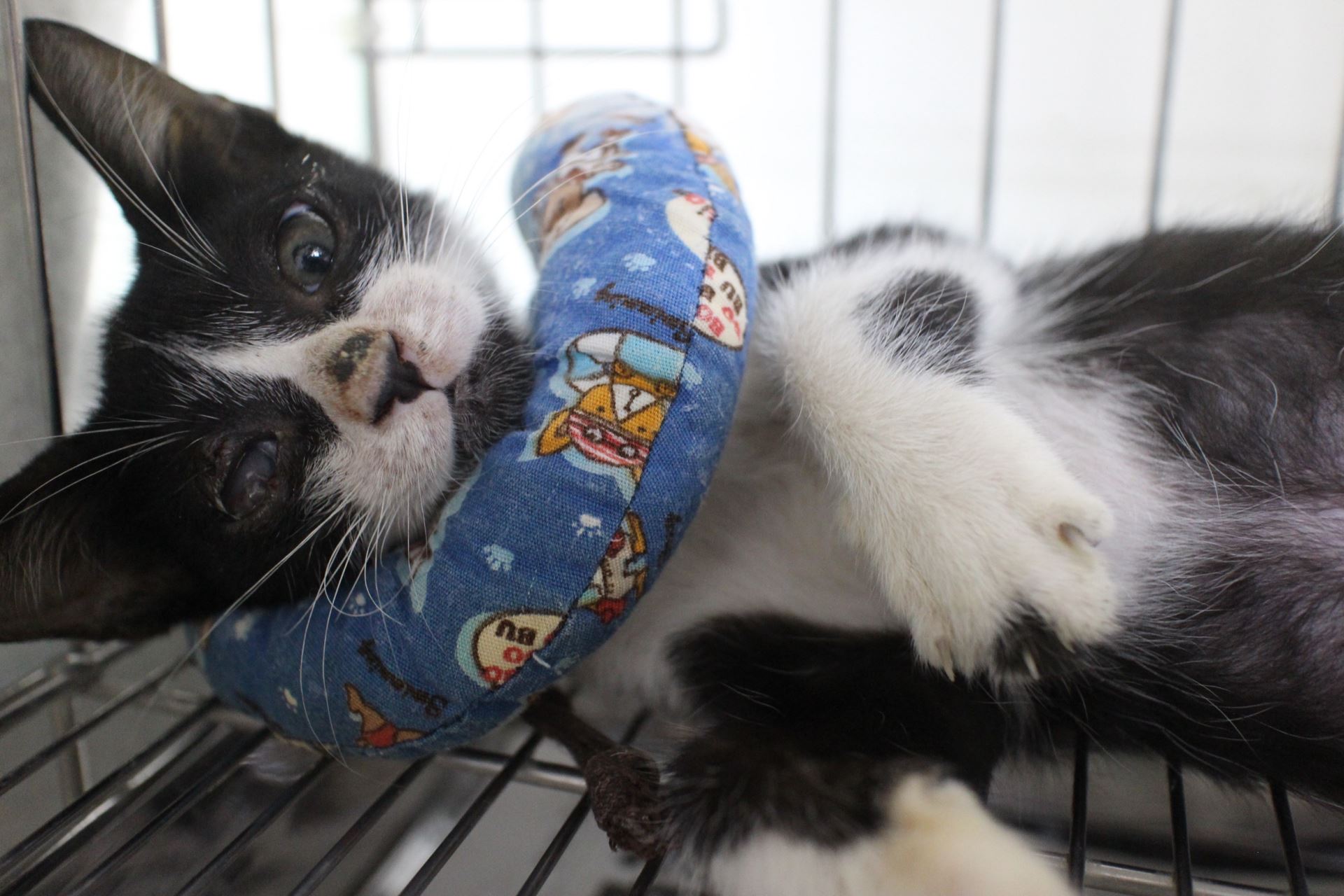 在進入收容照護階段後,小黑白貓被安置於新店動物之家休養。