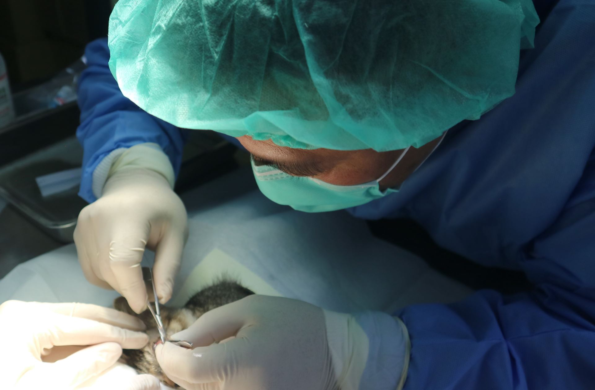 經獸醫團隊評估後,小黑白貓隨即接受緊急輸液、營養補充及眼科手術等醫療處置。