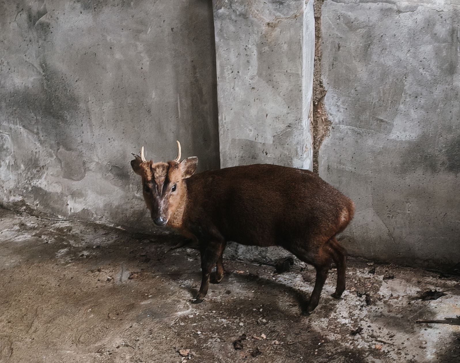 昭靈宮人員在清晨發現這位「特別的訪客」時,山羌正縮在角落,神情戒備卻沒有力氣離開。