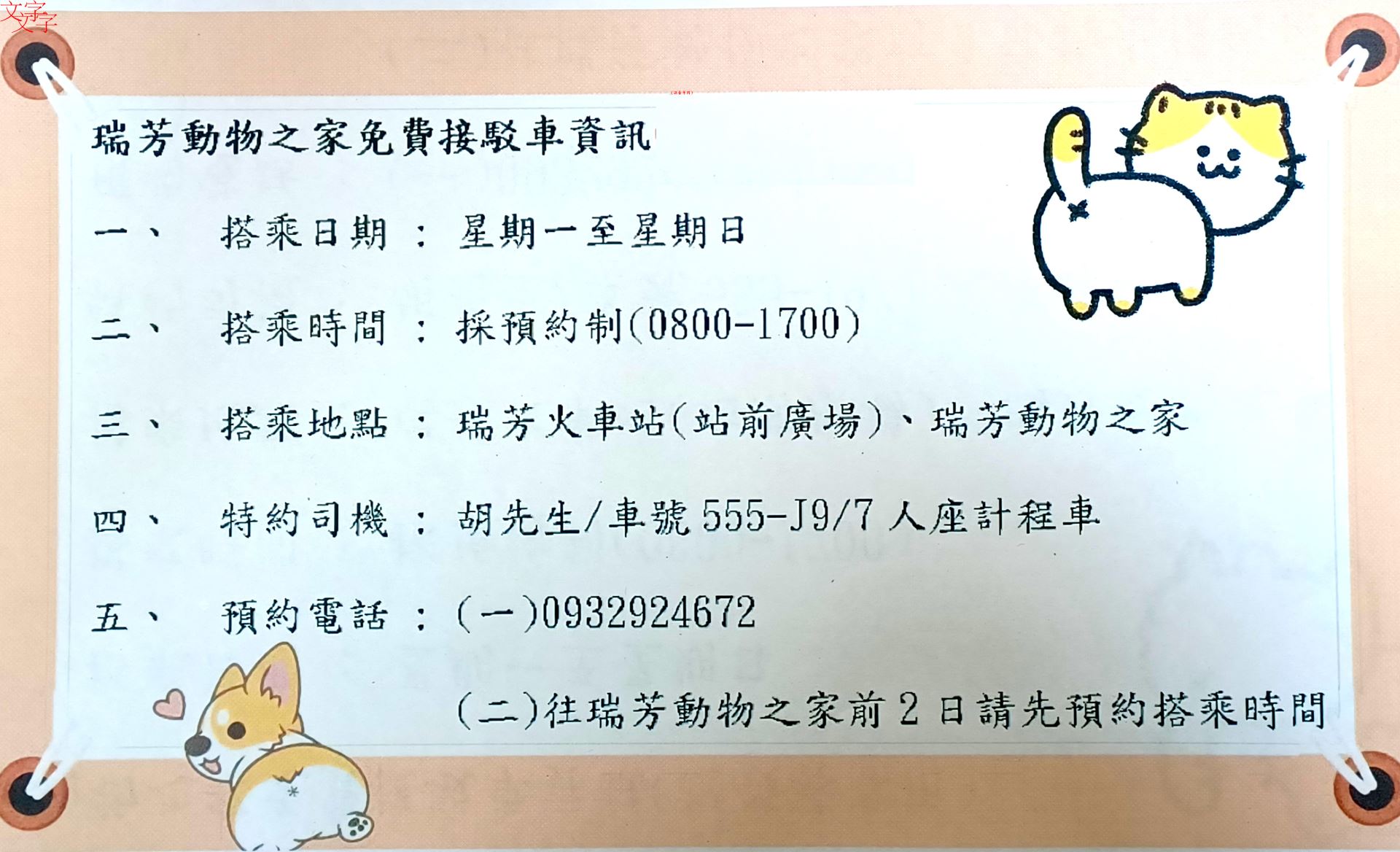 即可從瑞芳火車站搭乘專車直達園區,省去轉乘與找路的不便,讓上山看毛孩這件事變得更加簡單而愉快。