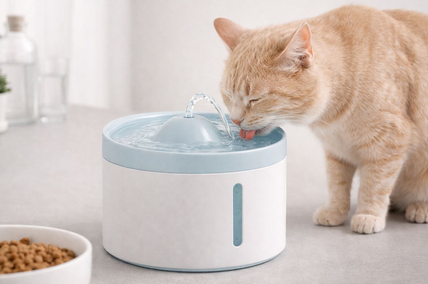 很多貓喜歡流動水;不過研究顯示,噴泉在部分貓身上可能只帶來小幅增加,甚至有貓不適應。建議「噴泉+原本水碗並存」,讓貓自由選。