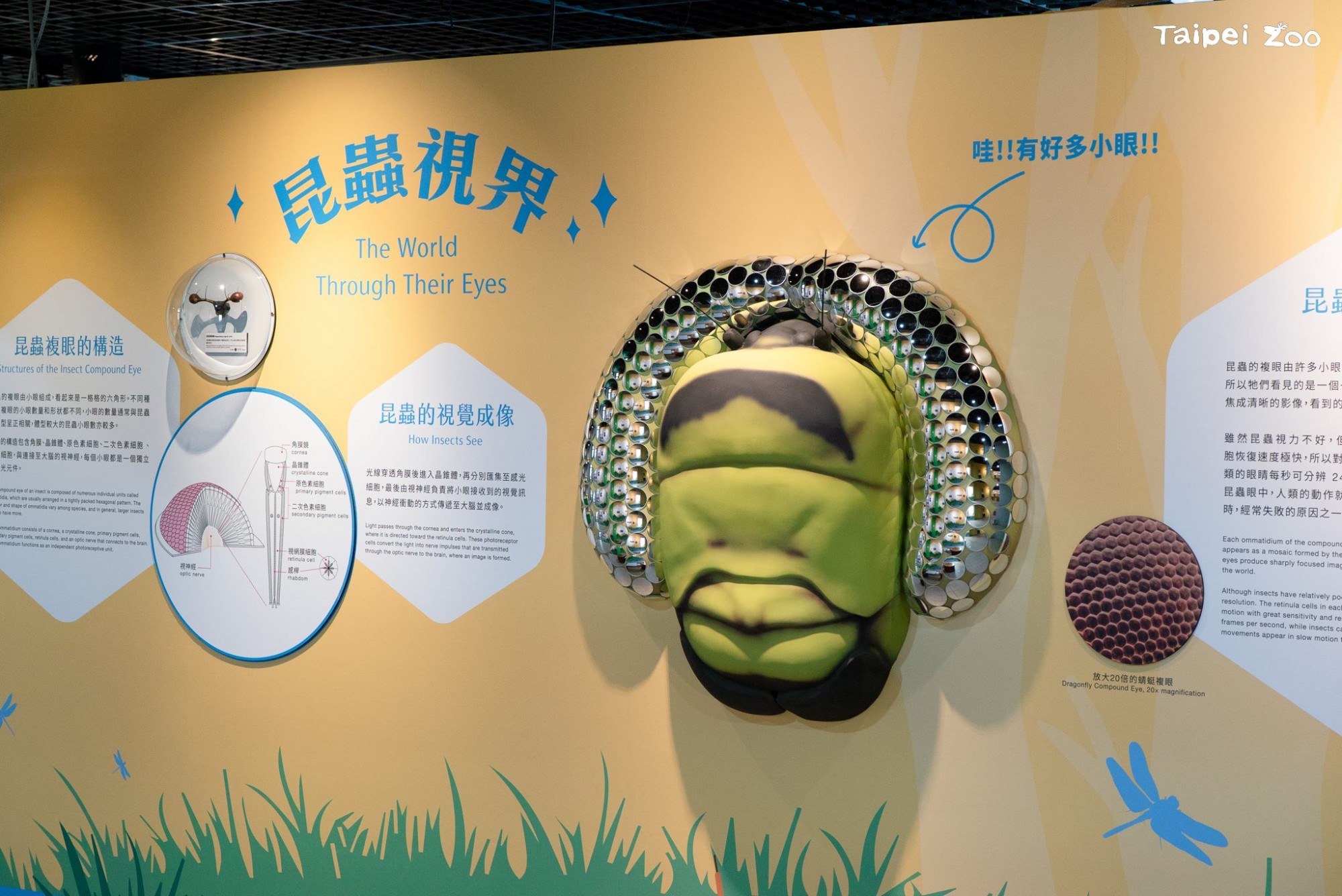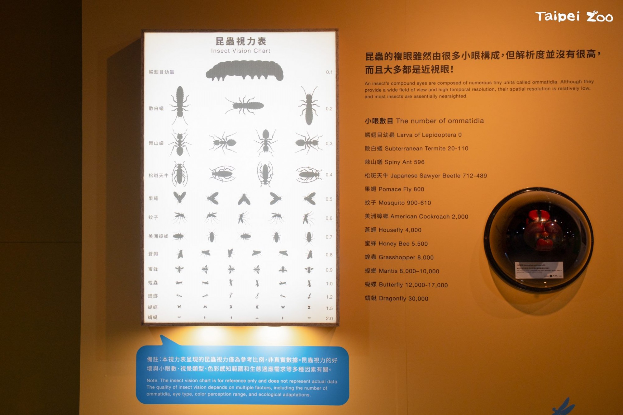 為了讓觀眾更近距離觀察,展區特別設計「免調焦觀察箱」及「昆蟲視力檢查燈箱」,邀請大家與昆蟲比比誰看得更清楚!