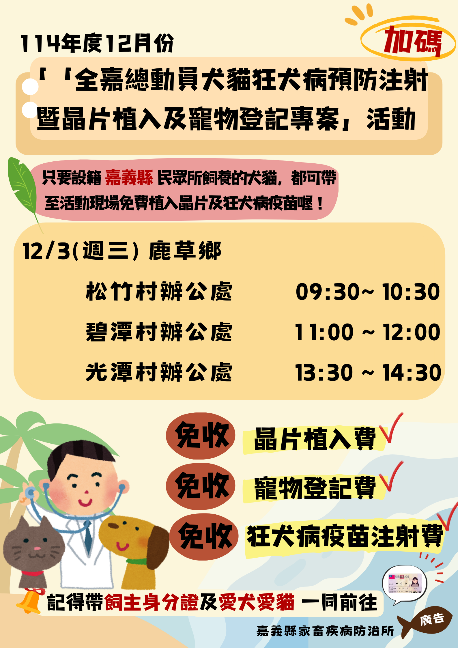 記得帶上 身分證 以及可愛的毛孩一起前往喔!